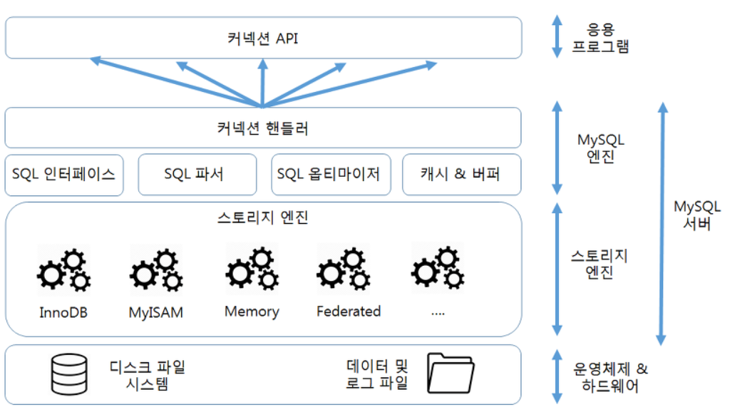 MySQL은 다른 DBMS에 비해 아키텍처가 매우 독특하다.