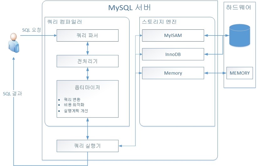 MySQL의 데이터 버퍼나 캐시로부터 데이터를 가져오는 역할까지 수행하지만,